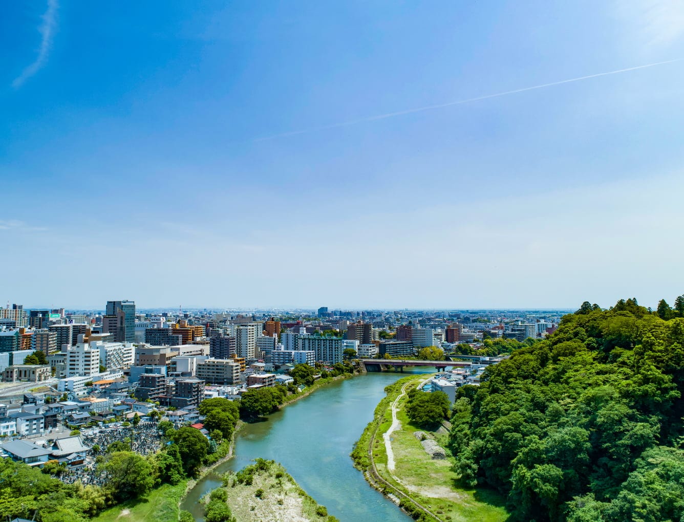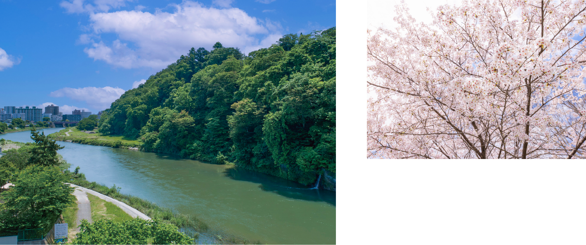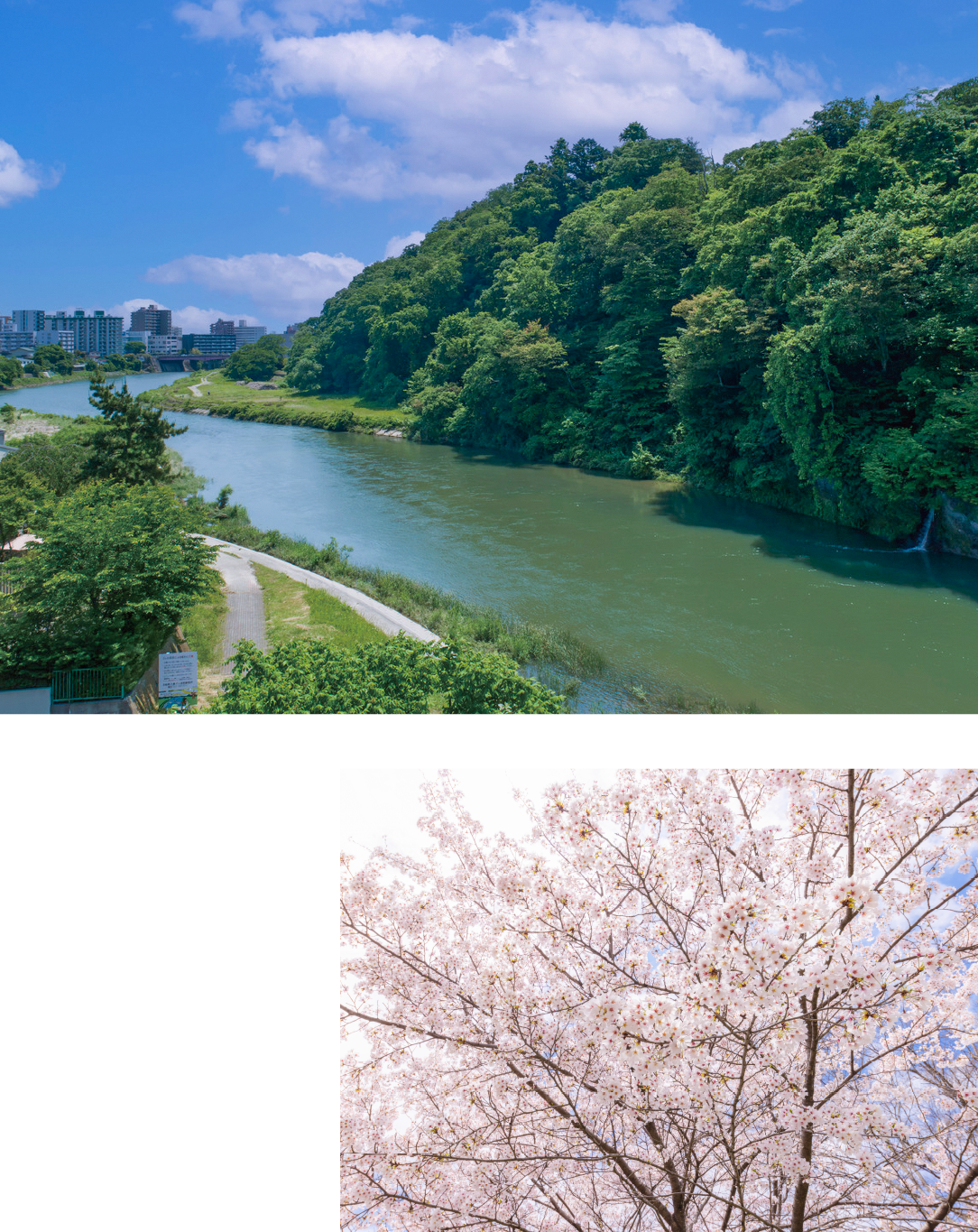 広瀬川のほとりに広がるこのエリアは、都市の利便と自然の癒しが共存する、