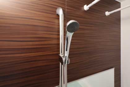 高級感と清潔感があるメタル調のシャワーヘッド。