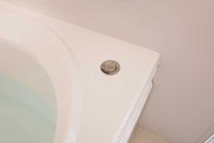 浴槽に手を入れずに、浴槽の縁の排水栓を一押しするだけで排水できます。