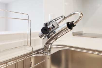 シンクの隅々までしっかり洗える浄水機能付き引き出しシャワー水栓。