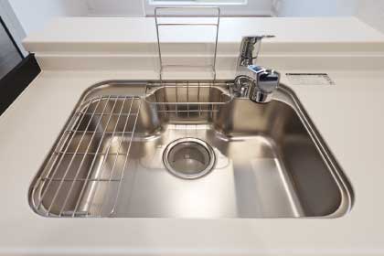 シンク裏に振動を抑える工夫を施し、シンクに当たる水音を軽減。