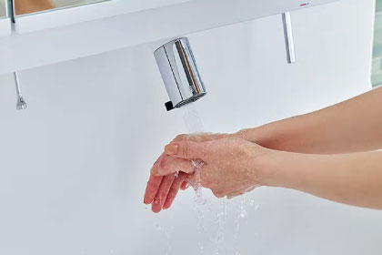 温調ハンドルで温度を設定すれば、お湯が熱くなったり冷たくなったりせず、安定した温度のお湯が得られます。