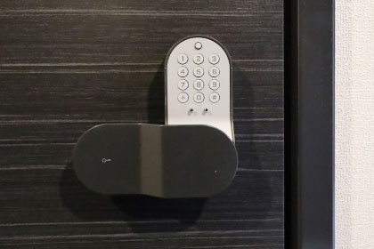 スマートフォン・交通系ICカード・暗証番号で開閉が可能なスマートロックを各住戸の玄関に採用。